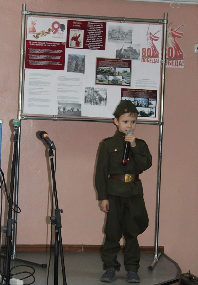 Со сцены прозвучали не только песни военных лет: «Верните память», «Встанем», «Не стреляй», «Только матери ждут» «Под Курском бои», но и песни о России «Россия моя», «Возле речки», «Пожелание». А также звучали стихотворные строки «Белоголовый Петя», «Оборванный мишка» и выступление танцевального коллектива «Матушка», «Девка по саду», «Бегги».