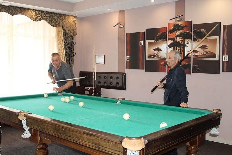 Любимая игра многих мужчин - это бильярд. И на этот раз в помещении бара звучала приятная мелодия, запах ароматного кофе будоражил сознание выиграть непременно. С каким большим воодушевлением, азартом игроки подготовились к турниру. А болельщики как переживали за своих товарищей… Участники соревнования - боролись достойно за призовые места. Награждение победителей проходило в ресторане санатория. Директор Захаров Д.И. наградил самых лучших, которые приняли участие в турнире. За занятые призовые места победителям были вручены грамоты с логотипом санатория и сувенирная продукция.