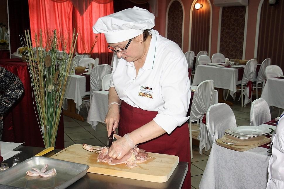 Шеф-повар рассказал гостям, как, не повреждая кожу курицы, подрезать позвоночник, ребра и тазовые кости, удалить хребет вместе со всеми костями, подрезать сухожилия на крыльях, на что нужно обращать внимание при выборе курицы, с какой начинкой можно её сочетать.