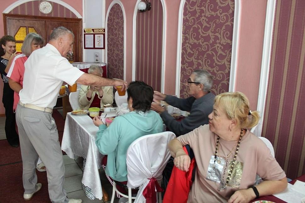 Директор санатория Дмитрий Иванович Захаров поздравил всех присутствующих в зале с праздником Медовым спасом и пожелал крепкого здоровья, благополучия, счастья, надежды, оптимизма и мирного неба.