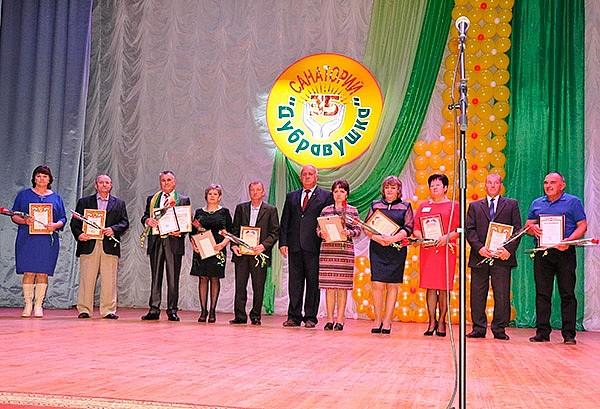 - 35 лет на наших глазах пишется история санатория, и все это время трудовой коллектив проходил путь становления. С 1973 по 1980 год было построено 28 пионерских лагерей за счет централизованного фонда колхозников и 43 лагеря труда и отдыха. В этом ряду был и санаторий «Дубравушка». На данном этапе Дмитрий Иванович Захаров делает многое, за это надо отдать должное. Он заслуживает особой похвалы, потому что в 21 веке ему приходится делать все возможное и невозможное, чтобы санаторий работал и процветал, - подчеркнул председатель Белгородской областной организации профсоюза работников агропромышленного комплекса Николай Нестерович Чуприна. В подтверждение своих слов он вручил Дмитрию Ивановичу Почетную грамоту Центрального комитета Профсоюза работников агропромышленного комплекса Российской Федерации за многолетний добросовестный труд в системе агропромышленного комплекса, сотрудничество с Профсоюзом по развитию социального партнерства и активную работу по оздоровлению членов Профсоюза. Коллектив санатория отмечен благодарностью заместителя Губернатора Белгородской области. Почетные грамоты Белгородского областного объединения профсоюзов Николай Нестерович вручил заведующей столовой Любови Анатольевне Сидякиной, электрогазосварщику Евгению Васильевичу Саляеву, повару Алле Владимировне Колосовой, главному экономисту Нине Григорьевне Семёновой. Почётные грамоты председателя Белгородской областной организации Профсоюза работников агропромышленного комплекса Российской Федерации получили заведующий гаражом санатория «Дубравушка» Николай Иванович Горбунов, старший повар смены Алла Анатольевна Логвиненко, водители Александр Дмитриевич Афанасьев и Александр Николаевич Мирошников, палатная медсестра Валентина Ивановна Кудрина.