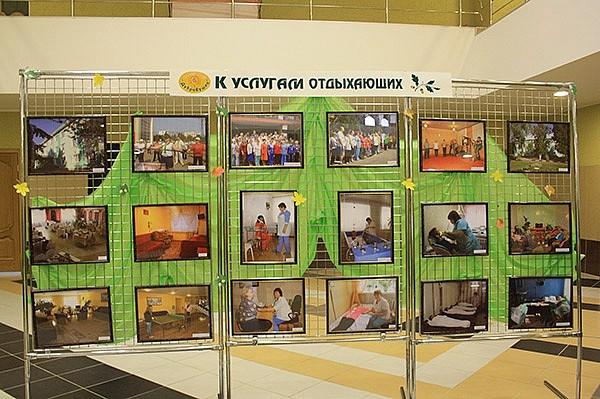 В малом зале была организована фотовыставка, раскрывшая историю становления санатория, состав структурных подразделений сегоднешнего коллектива, перечень услуг, предоставляемых отдыхающим. На выставке была представлена рекламная продукция. Также посетителям выставки предлагалась оздоровительная продукция: кислородный коктейль и фито чаи.