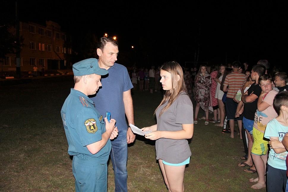 На тренировочной отработке практических действий в случае возникновения пожара для детей присутствовали начальник службы безопасности санатория «Дубравушка» Валерий Витальевич Бабкин, начальник ВДПО Корочанского района Дмитрий Иванович Иванов, старший дознаватель пожарного надзора МЧС РФ по Корочанскому району, капитан внутренней службы Павел Александрович Шевченко. Тренировка показала, что эвакуация началась в 23.00 и закончилась в 23.04. Воспитанники выходили из корпусов организованно и эвакуировались за четыре минуты. Своевременно были открыты все запасные выходы. Тренировочная эвакуация в лагере прошла на «отлично».
