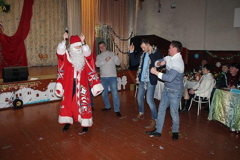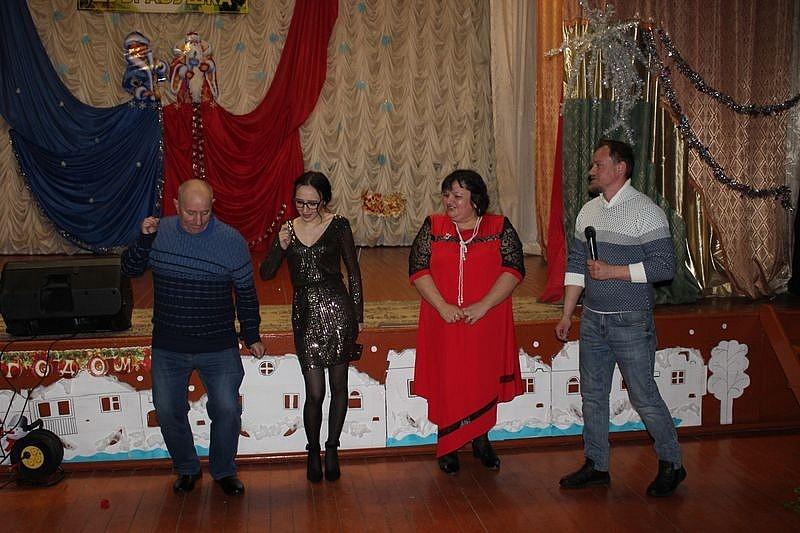 С появлением Деда Мороза и Снегурочки начался настоящий праздник с танцами, песнями, играми и конкурсами. В течение вечера были проведены веселые игры, в которых участвовали