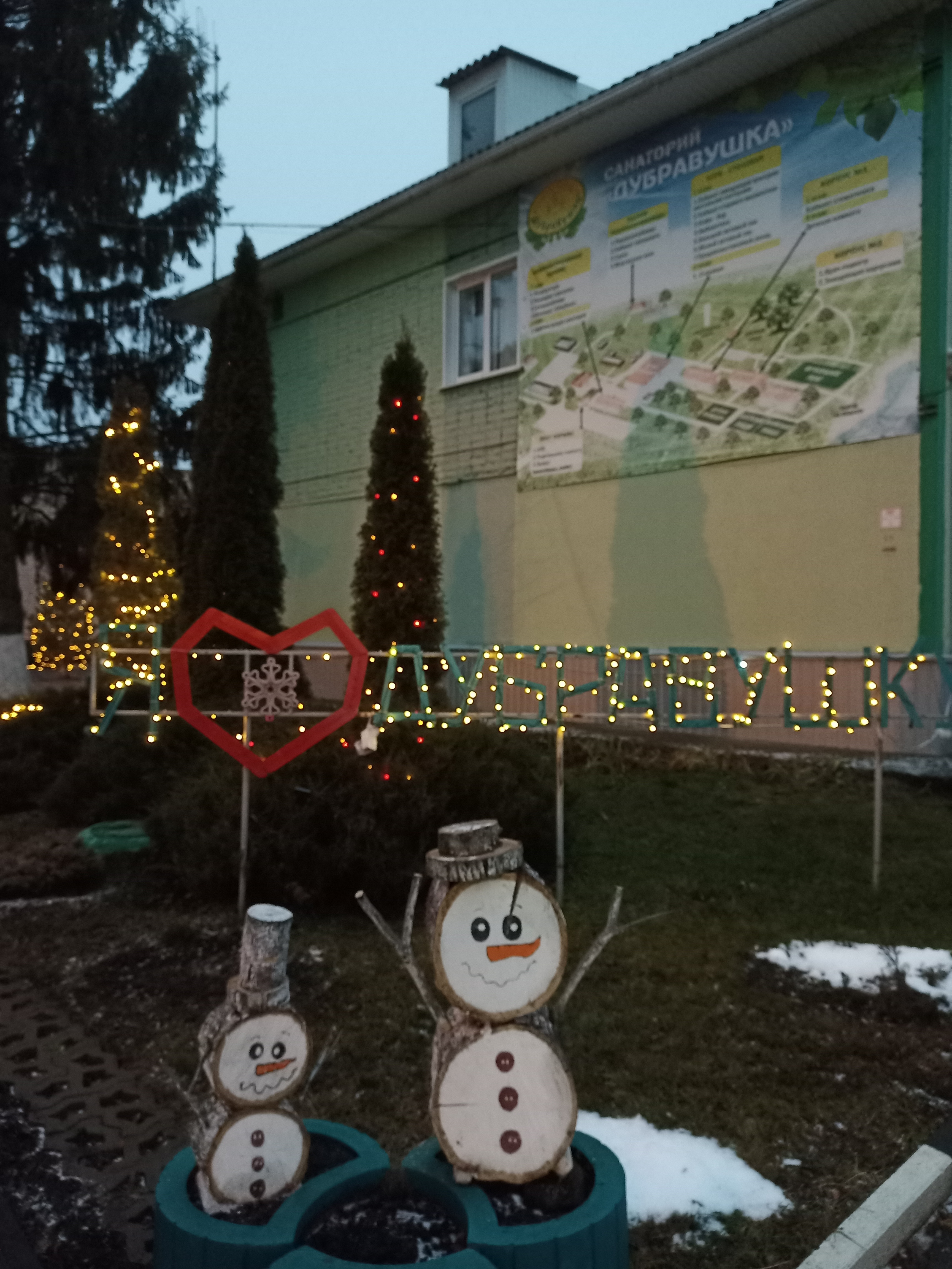 Санаторий «Дубравушка» подготовил к встрече Нового 2026 года удивительную световую иллюминацию. Возле административного корпуса установлена живая ель. Сотрудники оформили лечебный, жилые корпуса, клуб, столовую, административный корпус и грязелечебницу с помощью светодиодных фигур, лент, шаров и других декоративных элементов.