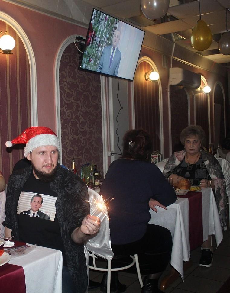 Ровно в полночь отдыхающие слушали традиционное Новогоднее обращение президента РФ В.В. Путина к народу и директора санатория «Дубравушка» Дмитрия Ивановича Захарова.