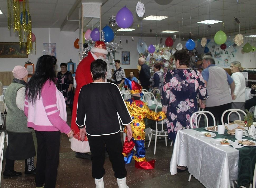 А вечером для проживающих в зале столовой состоялась праздничная новогодняя программа с Дедом Морозом и Снегурочкой.