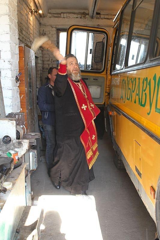 В завершение торжественной церемонии священник подарил икону Пресвятой Богородицы, чтобы Пречистая оберегала водителей во время поездок.