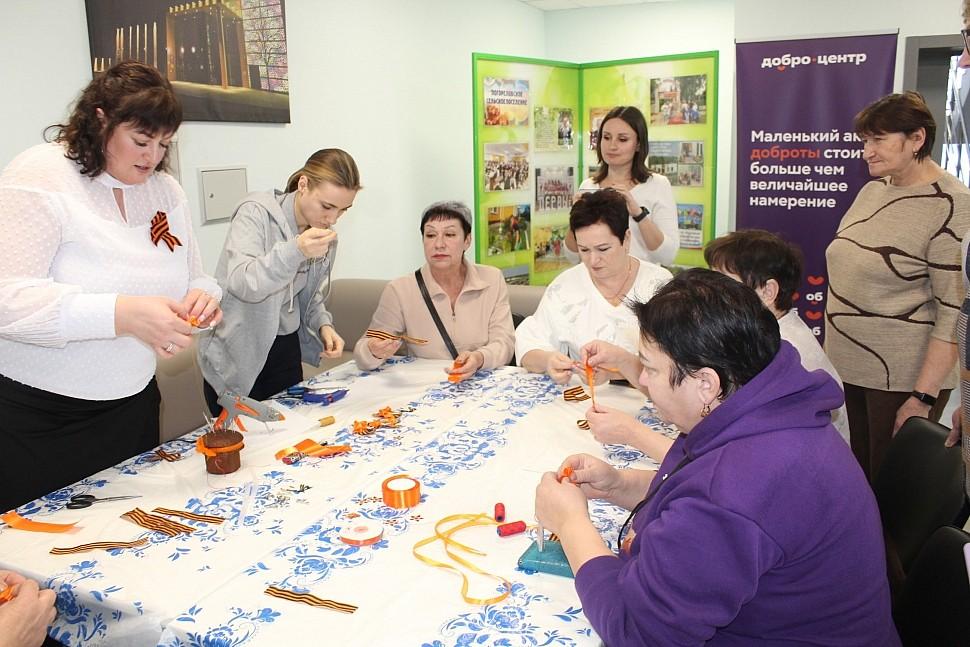 В фойе клуба проведен мастер- класс, отдыхающие приняли участие в изготовлении георгиевской ленточки.