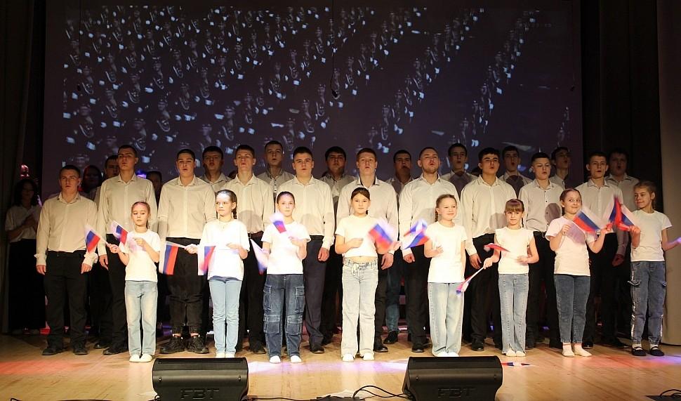 Для зрителей были исполнены патриотические песни: «Родина», «Журавли», «Моя Россия», «А закаты алые», «Сыновья России», «Колокол», «Воины не умирают», «Баллада о красках».