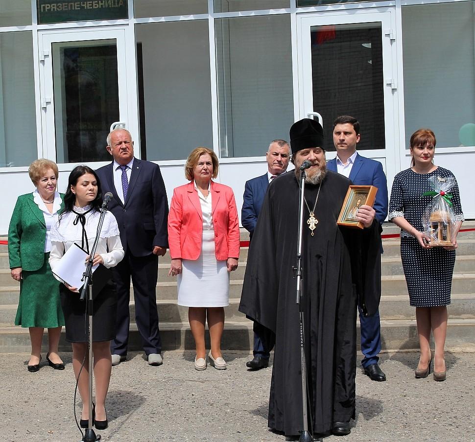 До начала торжественной церемонии открытия здания отец Михаил совершил обряд освещения грязелечебницы.