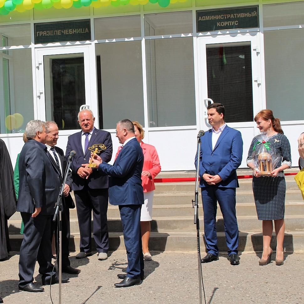 Генеральные подрядчики Юрий Иванович и Владимир Петрович вручили директору санатория «Дубравушка» Дмитрию Ивановичу Захарову символический ключ как символ процветания грязелечебницы и осуществления дальнейших целей.