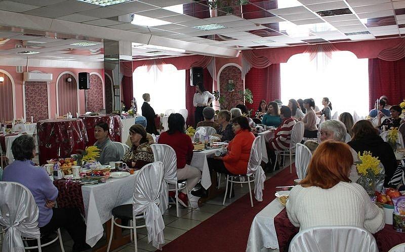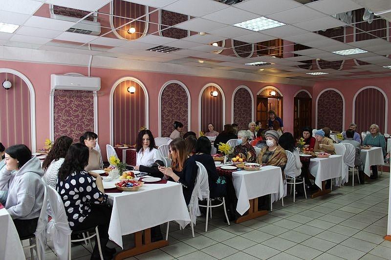 Поздравление женщин, прибывших из ДНР и ЛНР в ресторанном зале санатория "Дубравушка"