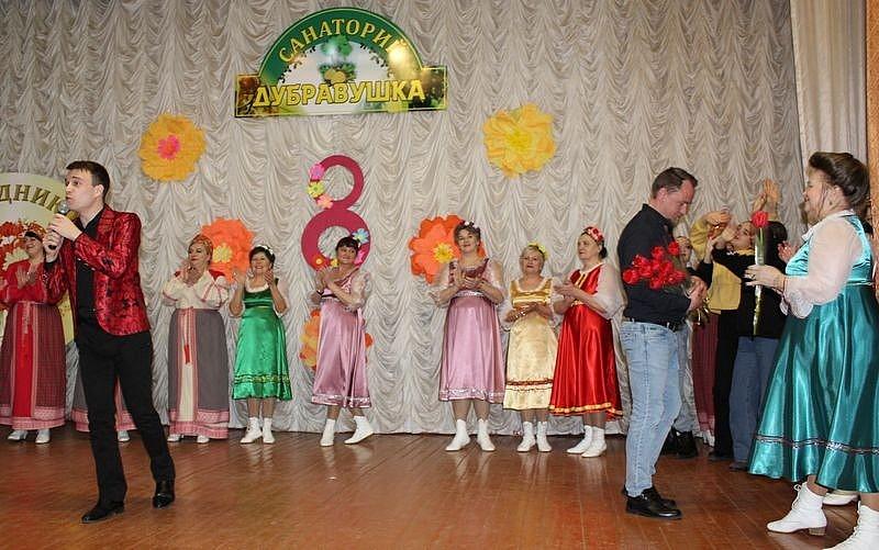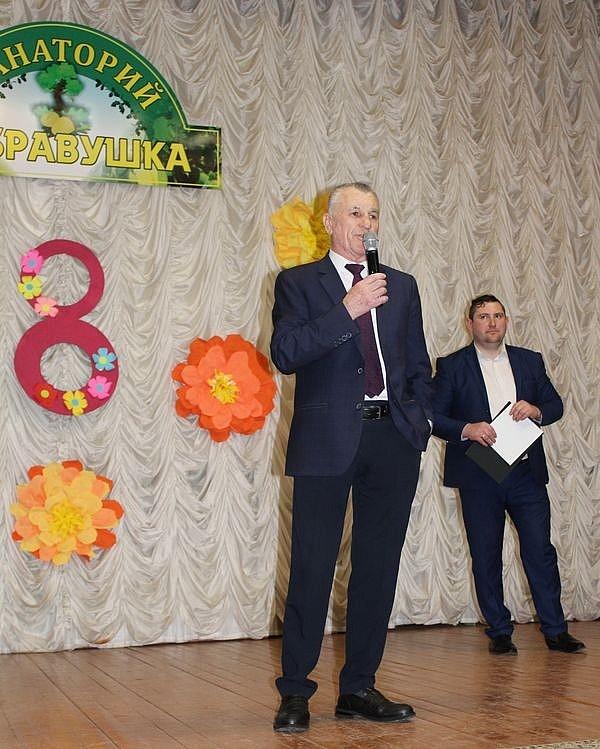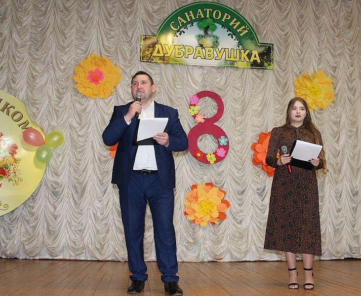 Директор санатория «Дубравушка» Дмитрий Иванович Захаров поздравил присутствующих в зале женщин и пожелал им любви, надежды, благополучия, радостной и светлой жизни. Он выразил слова благодарности в адрес женщин, которые оказывают помощь военным, матерям, женам, чьи сыновья и мужья находятся в зоне СВО.