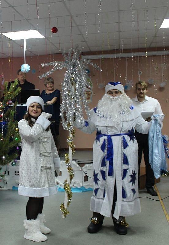 Сотрудники санатория и гости принимали музыкальные новогодние подарки от «Ретро+» и Светланы Дюминой. На мероприятие пришли поздравить сотрудников санатория дед Мороз и Снегурочка.