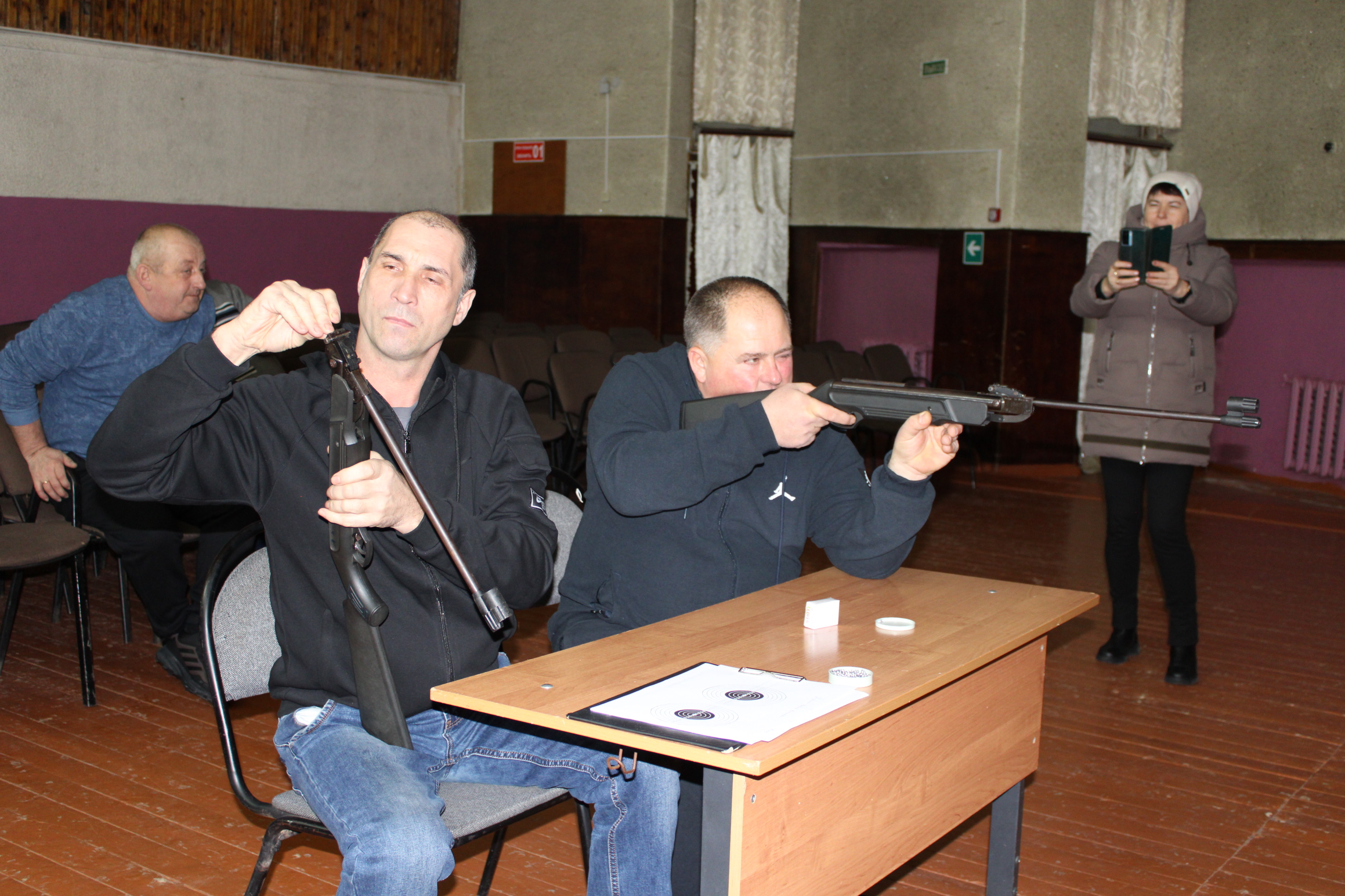 Получив инструкцию проведения соревнований, первые два участника подписали мишени, получили пульки. Каждому меткому стрелку дается три пробных и пять зачетных выстрелов по разным мишеням. После пробных выстрелов участники соревнований осматривают свои мишени, чтобы зачетные выстрелы уже точнее поразили цель.