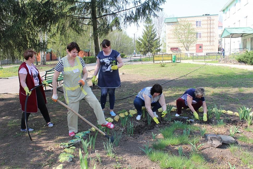 25 апреля прошёл день благоустройства территории санатория по озеленению. Сотрудниками санатория «Дубравушка» были высажены в клумбы питунии и тагетес (бархатцы).