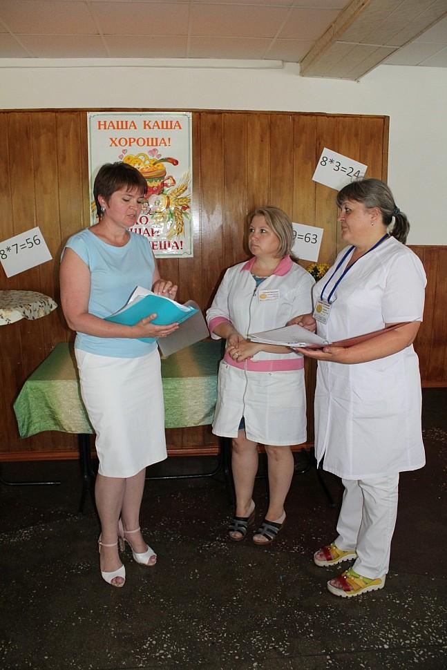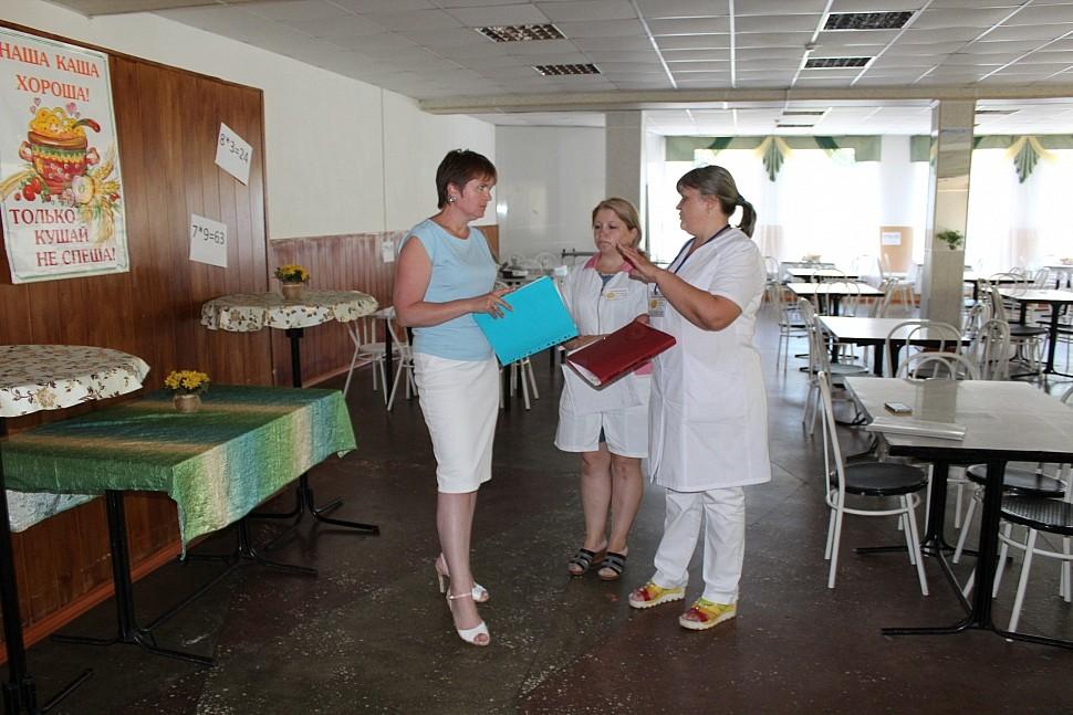 Проверяя столовую Галина Анатольевна выяснила, что питание детей осуществляется согласно Приказа Министерства здравоохранения и социального развития Российской Федерации от 05.08.2003г. № 330 «О мерах по совершенствованию лечебного питания в лечебно- профилактических учреждениях Российской Федерации» и в соответствии со сбалансированным меню (белки, жиры, углеводы), согласованным с территориальным отделом Управления Роспотребнадзора в Губкинском районе и утверждённым директором санатория. На основании утвержденного меню составляется ежедневное меню- раскладка с указанием выхода блюд.