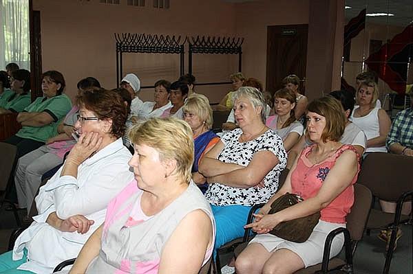 Лекционный материал представила гл. экономист санатория Семенова Нина Григорьевна. Она дала рекомендации медицинскому персоналу по общению с пациентами , о профессиональном поведении , о правилах внутреннего трудового распорядка , о стиле общения сотрудников по телефону и между коллегами, стиле одежды и внешнем виде, о правилах поведения младшего медицинского персонала с пациентами санатория.