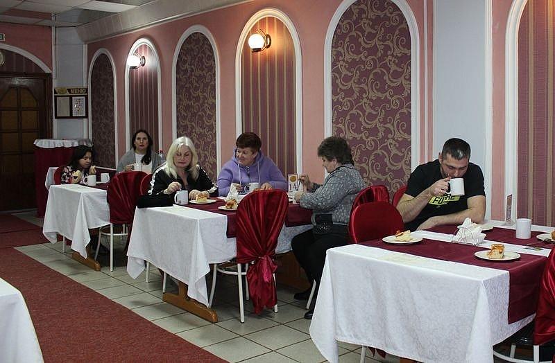 Мероприятие в ресторанном зале санатория прошло в непринужденной тёплой и уютной обстановке. Чудесное чаепитие с ароматной выпечкой сопровождалось пением Любовь Сиренко.