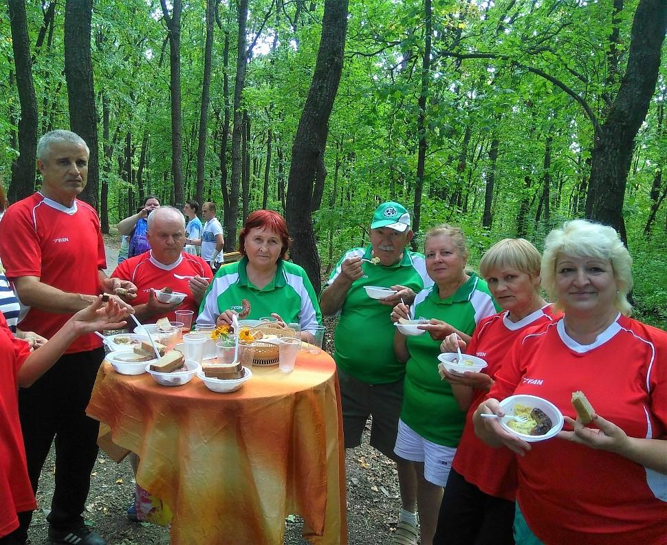 Прежде чем приступить к последнему заключительному этапу спартакиады все гости, отдыхающие, сотрудники и болельщики подкрепились кашей, которую приготовил на костре Мирошников Александр Николаевич, и насладились душистым травяным чаем.