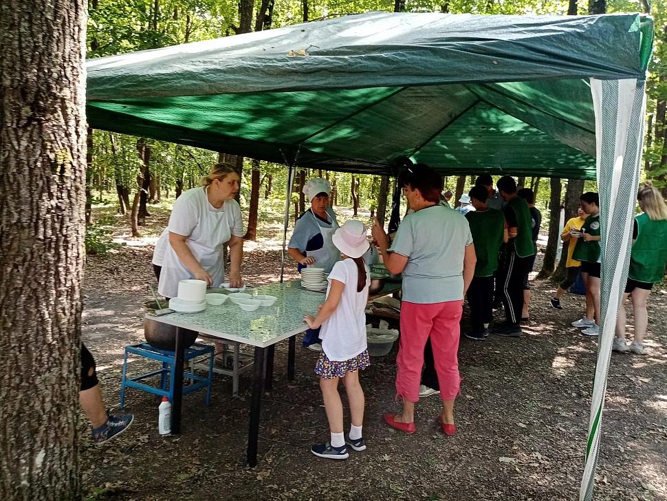 Прежде чем приступили к церемонии награждения все гости, отдыхающие, сотрудники и болельщики VII летней спартакиады подкрепились кашей, приготовленной на костре.