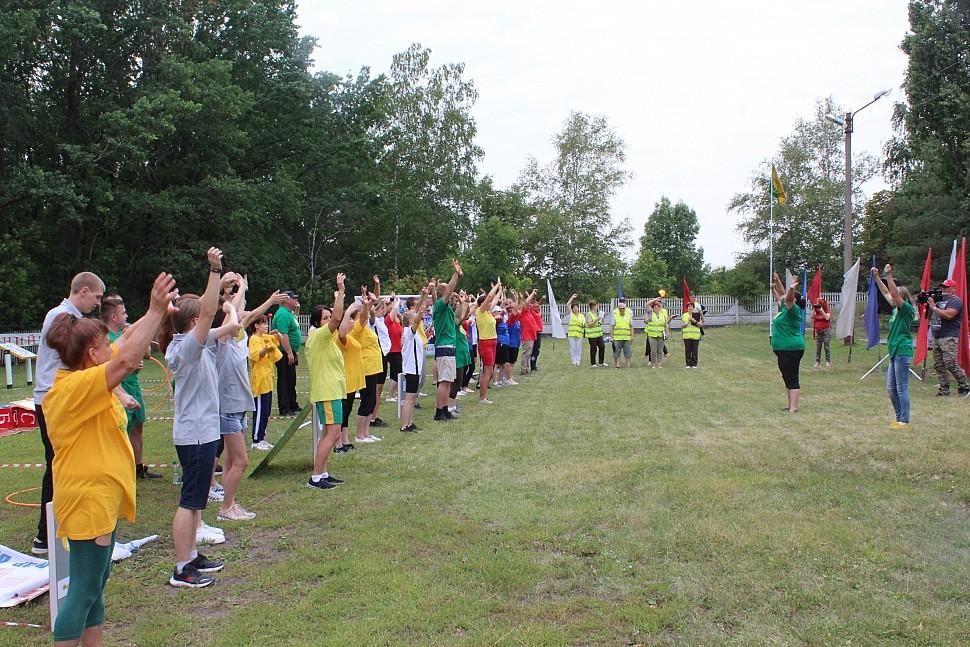 Перед стартом была сделана разминка с командами участников: «Заводная зарядка».