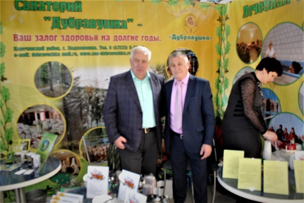 Поддержали на выставке санаторий «Дубравушка» почётные гости: учредитель, председатель Белгородской областной организации профсоюза работников АПК РФ Николай Нестерович Чуприна, заместитель председателя Белгородской областной организации Профсоюзов работников АПК РФ Валентина Ивановна Харебина.