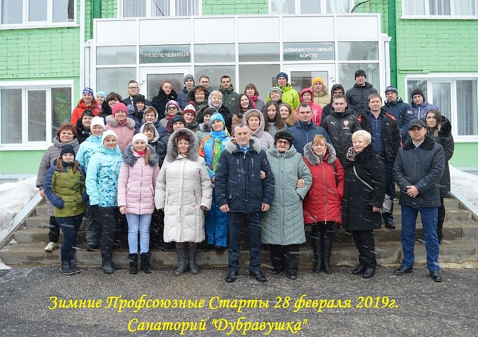 28 февраля 2019 года Обком профсоюза народного образования и науки на территории санатория «Дубравушка» организовал и провёл эстафетные соревнования «Зимние профсоюзные старты». После регистрации директор санатория Дмитрий Иванович Захаров и его заместитель Сергей Николаевич Кислицин провели экскурсии по санаторию «Дубравушка», а затем было сделано общее фото на память.