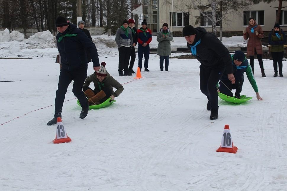 С 13.30 началась подготовка участников Президиума к спортивным соревнованиям, которые проходили на стадионе санатория. Программа соревнований представляла собой эстафету из 6 видов состязаний: санный спорт, городки, собери пазл, бобслей, хоккей, биатлон. Ведущий соревнований Игорь Игоревич Махов представил 6 команд: «Энергия», «Цвет настроенья», «Профсоюзный легион», «Дубравушка», «Заводные апельсинчики», «585».